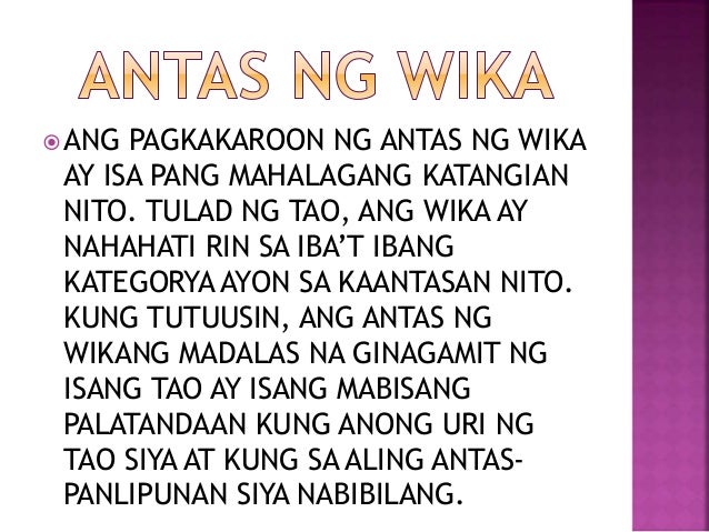 Kabilang ang mga sumusunod sa mga kaantasan ng wika. Pinapaalala ng mga kasabihan tungkol sa pag-ibig na may bahid ng pait at kahirapan sa paghahanap at pagpapanatili ng pag-ibig kung kayat habang marami ang nagnanais nitoy maliit lamang ang nakahahanap. Ikaw ay lumitaw O Katalinuhan magitang na diwang puno sa isipan mga puso namiy sa iyoy naghihintay at dalhin mo roon sa kaitaasan.