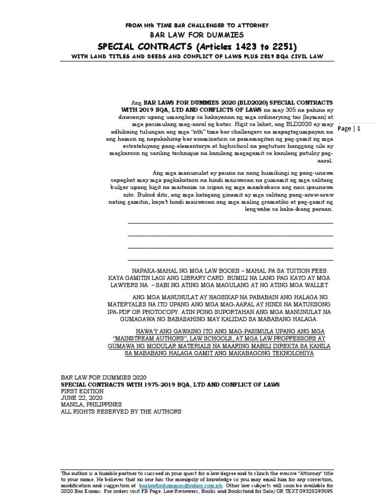 Bld Specialcontracts With 2019 Bqa Explained Pdf