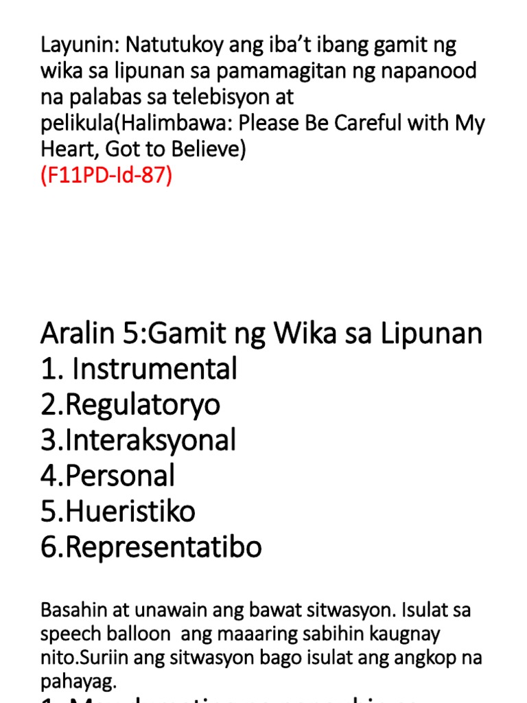Sumusulpot ang ganitong heuristikong tungkulin ng wika sa mga pagkakataong nagtatanong sumasagot o dumadaloy ang isang pamumuna bilang pagkilos ng isang bata o indibidwal. Ano Ang Mga Gamit Ng Wika Sa Lipunan.