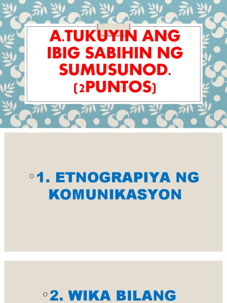 Muli ito ay kasangkapan ng komunikasyon ng dalawa o higit pang nag-uusap na mga tao. Jovy Peregrino Ang salita ay isa lamang manipestasyon ng wika 5. Maaari ring maging wika ng pagpapalaya.