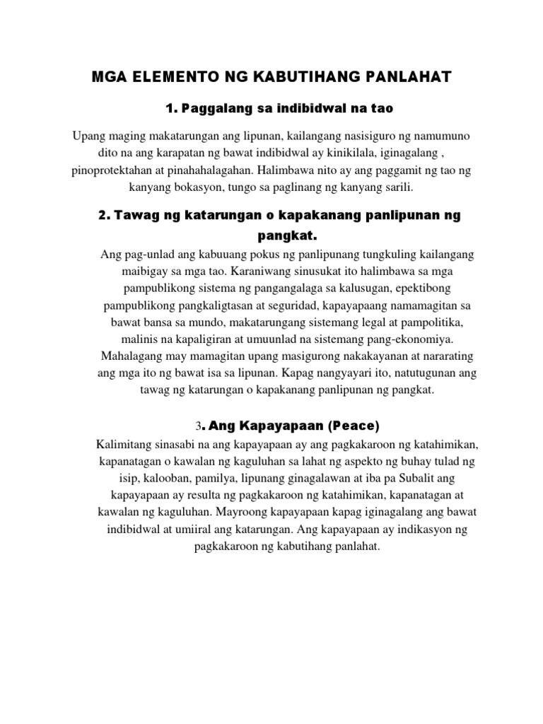 Mga Elemento Ng Kabutihang Panlahat